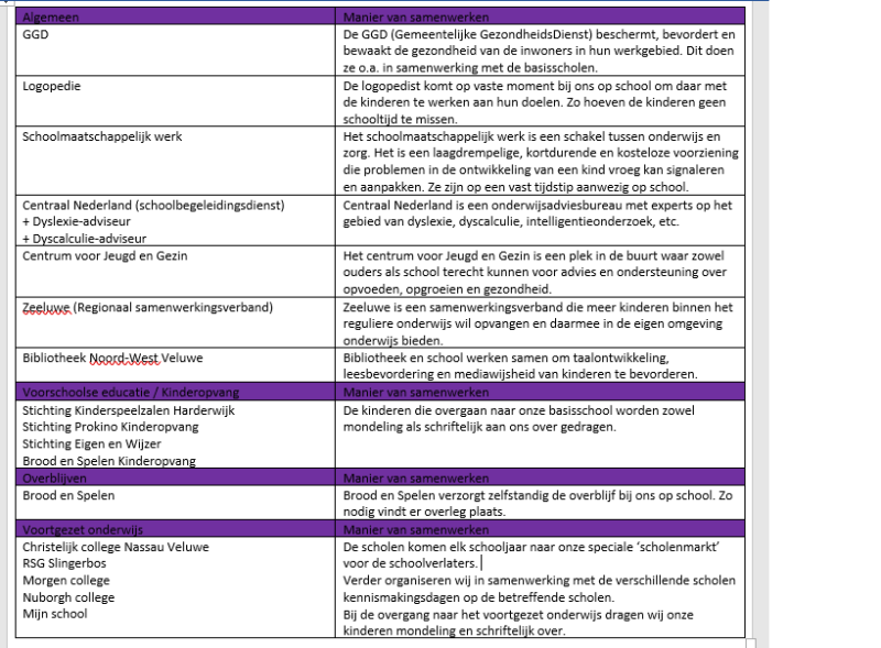 OV (Ouder Vereniging): Ouders in de ouder vereniging houden zich meestal bezig met het organiseren van activiteiten. Soms buigen ze zich ook over beleidszaken die vooral voor ouders en leerlingen belangrijk zijn. (bv. Schoolreis, schooltuin, vieringen etc.)
